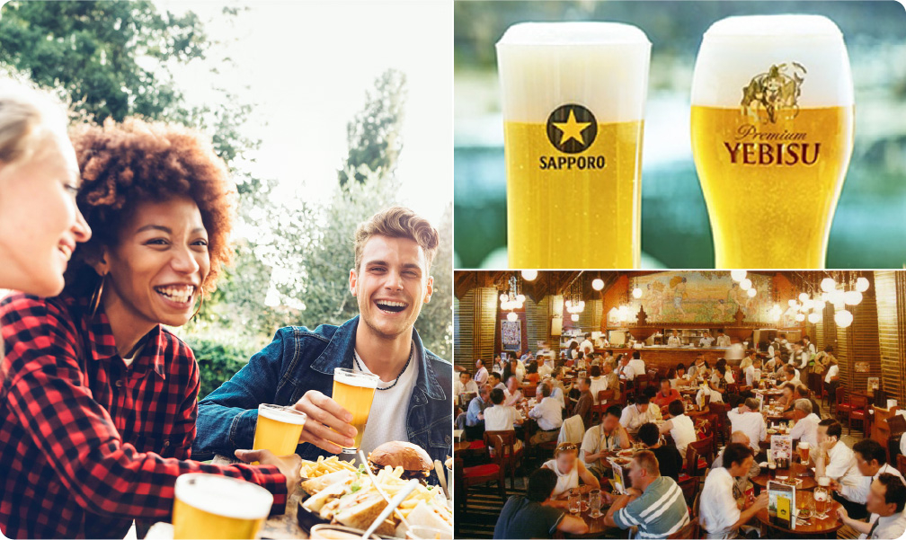 サッポログループは、140年以上にわたりお客さまの生活に寄り添い、「潤い」と「豊かさ」を提供してきました。酒類事業、食品飲料事業、不動産事業を柱とした事業活動のなかで磨き上げた「個性かがやくブランド」を活かし、独自のブランド体験を創出することで、人々と地域社会のWell-beingに貢献していきます。