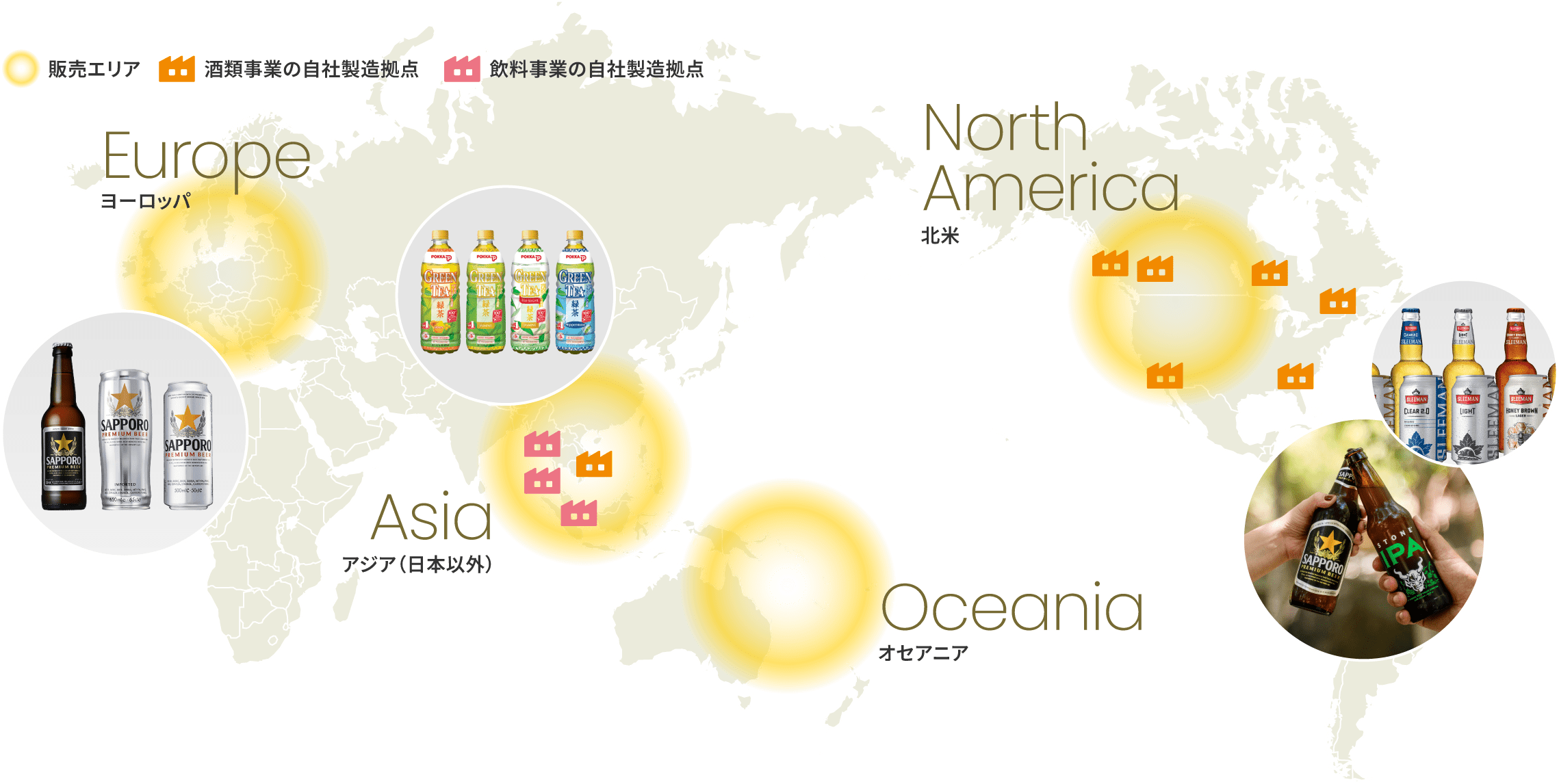 また、海外飲料事業は、POKKAブランドを軸にシンガポール、マレーシア、中東など約60カ国で事業を展開。