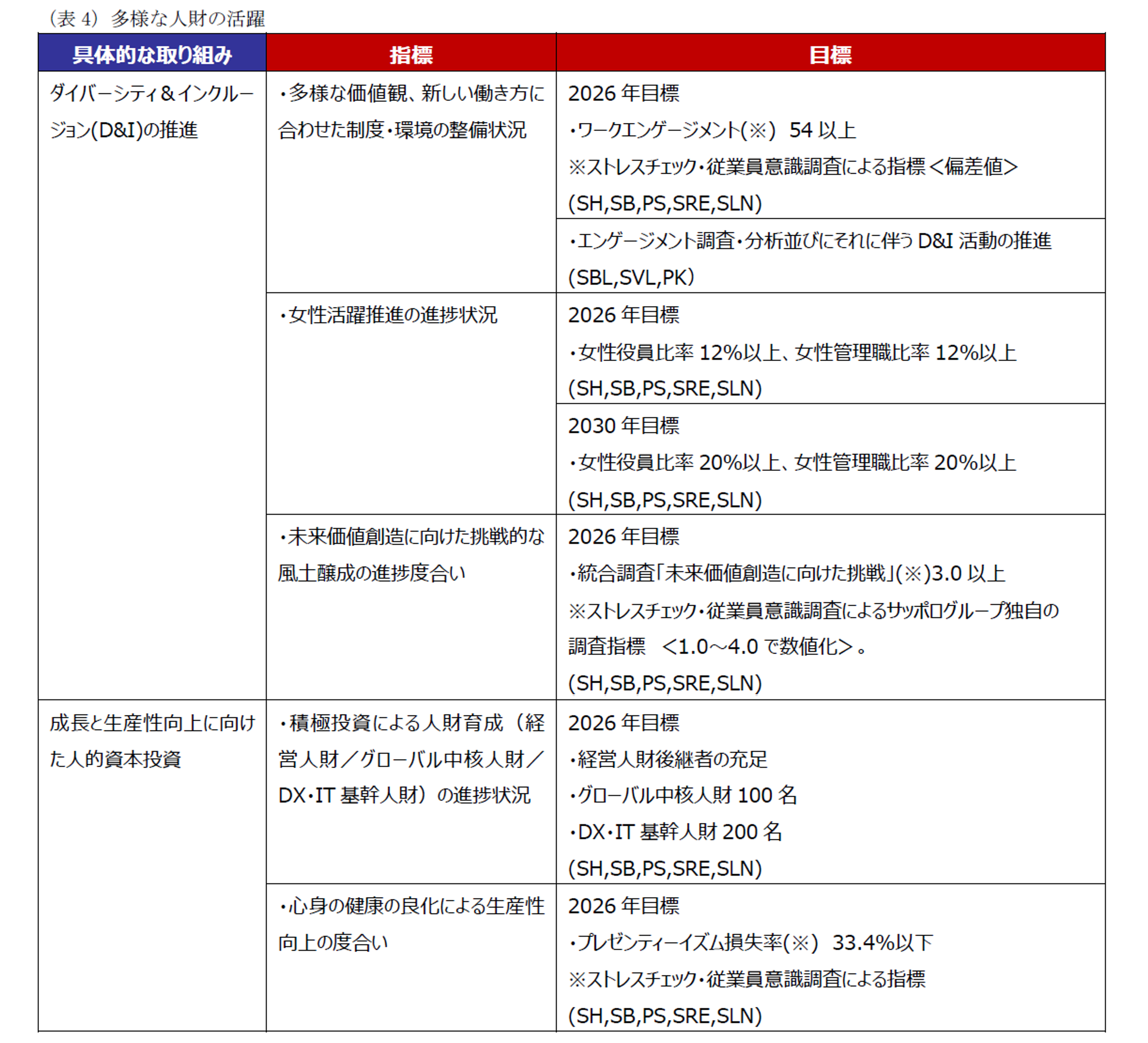 SH:サッポロホールディングス、SB:サッポロビール、PS:ポッカサッポロフード&ビバレッジ、SGF:サッポログループ食品、SRE:サッポロ不動産開発、SLN:サッポロライオン、SBL:スリーマン、SVL:サッポロベトナム、PK:ポッカ