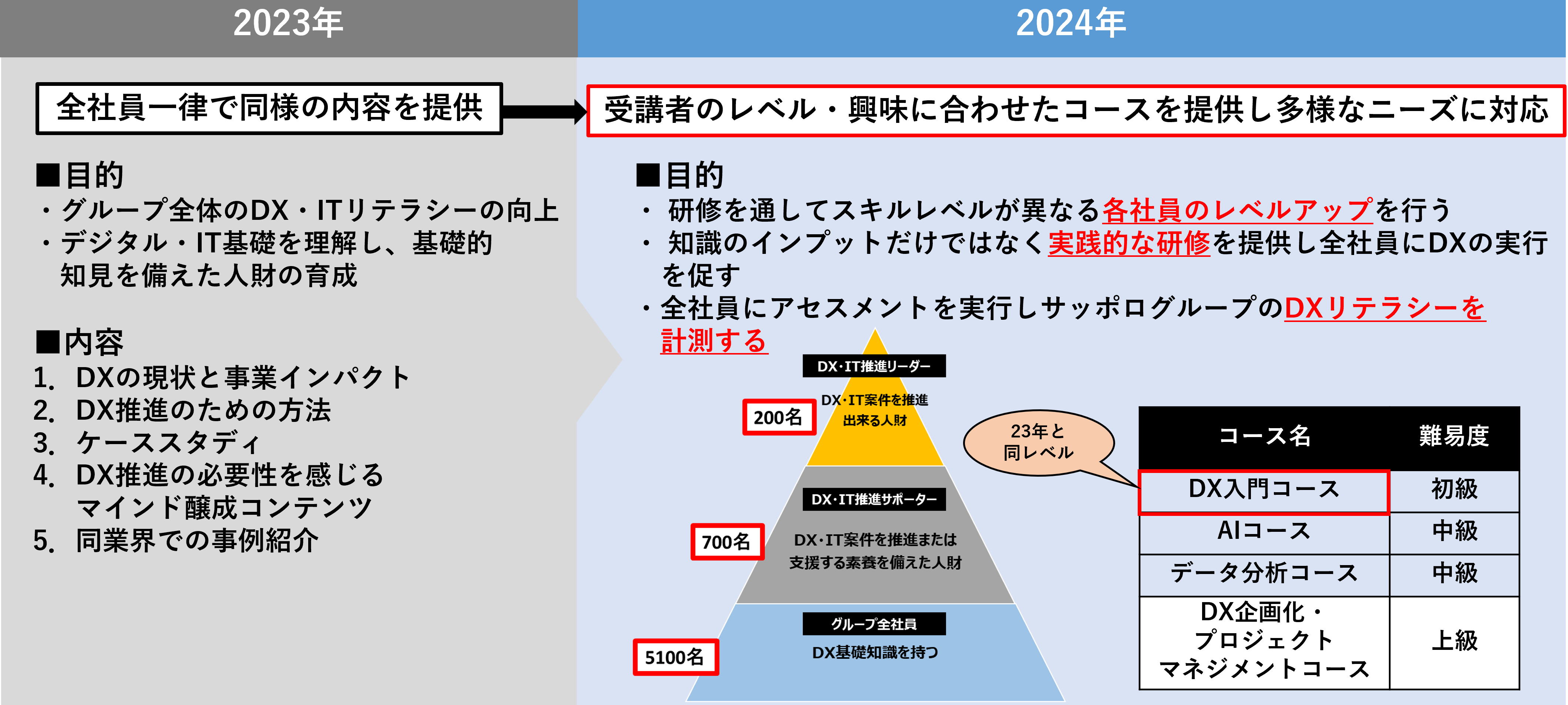 サッポロホールディングス(株)は、「全社員 DX 人財化」を推進しDXによる成果創出を実現するため 2022年、2023年に続き本年もDX・IT 人財育成プログラムをスタートします。