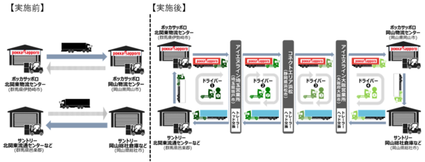 サッポロホールディングス(株)のグループ企業であるサッポログループ物流(株)は、サントリーグループと共同で、群馬県~岡山県間の輸送の一部でスイッチ輸送(注1)を行う長距離での往復輸送(注2)を11月13日から開始します。