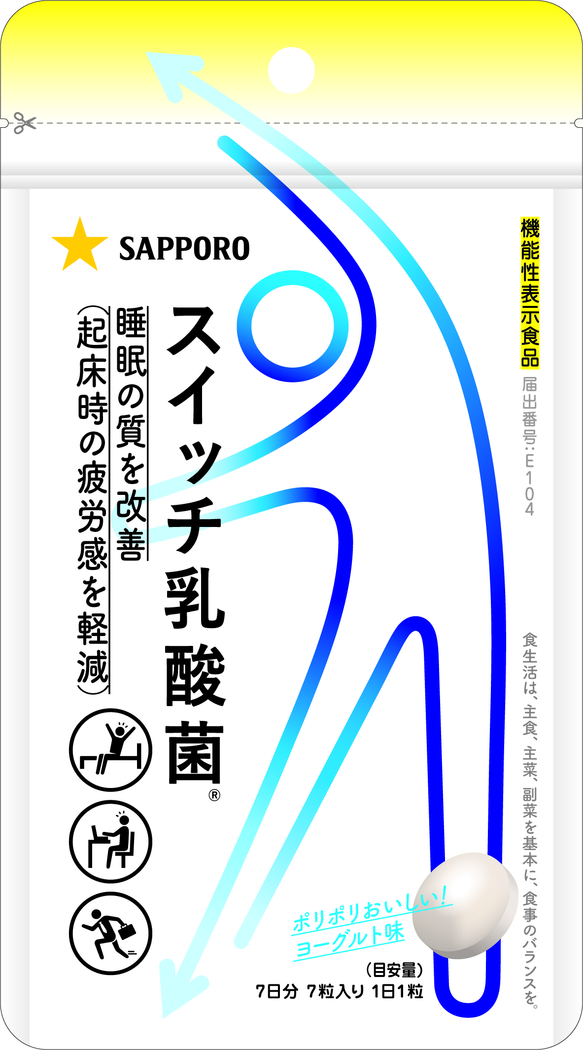 本品(スイッチ乳酸菌)には独自のLactobacillus brevis SBC8803(SBL88)が含まれ、睡眠の質を改善(起床時の疲労感や眠気を軽減)する機能があります。